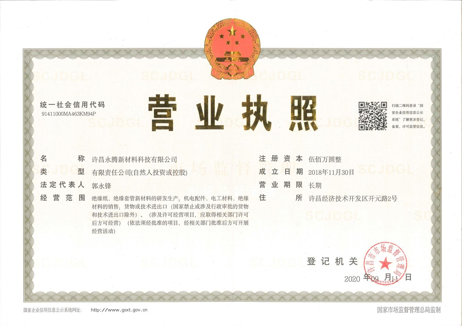 许昌永腾新材料科技有限公司坐落于美丽的河南省许昌市,紧邻郑州国际交通枢纽,我公司自2009年建厂以来一直坚持“以科技为引领,以创新谋发展,以质量创品牌,以诚信铸未来”的宗旨发展到今天,现已发展成为能够生产销售多种绝缘材料的综合性厂家,主要产品有绝缘复合材料,绝缘薄膜,玻璃纤维套管,绑扎带,绝缘纸、层压板,树脂浸渍纤维制品等,公司部分产品通过欧盟ROHS环保认证。由于我公司良好的信誉及优质的产品质量,销售网络正在迈向全球更多的国家,永腾期待您的加入!