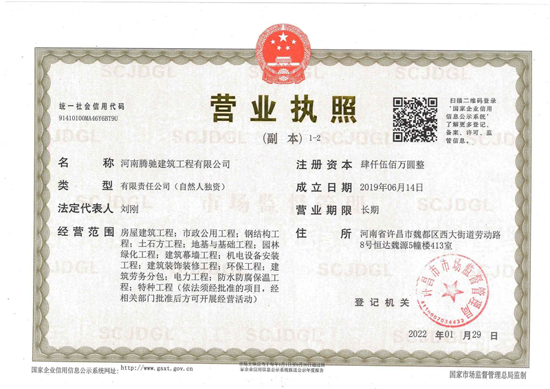 河南腾驰建筑工程有限公司是一家专业从事建筑工程施工的企业,具有丰富的施工经验和专业的技术团队。公司秉承“质量第一,客户至上”的服务宗旨,致力于为客户提供优质、高效的建筑施工服务。