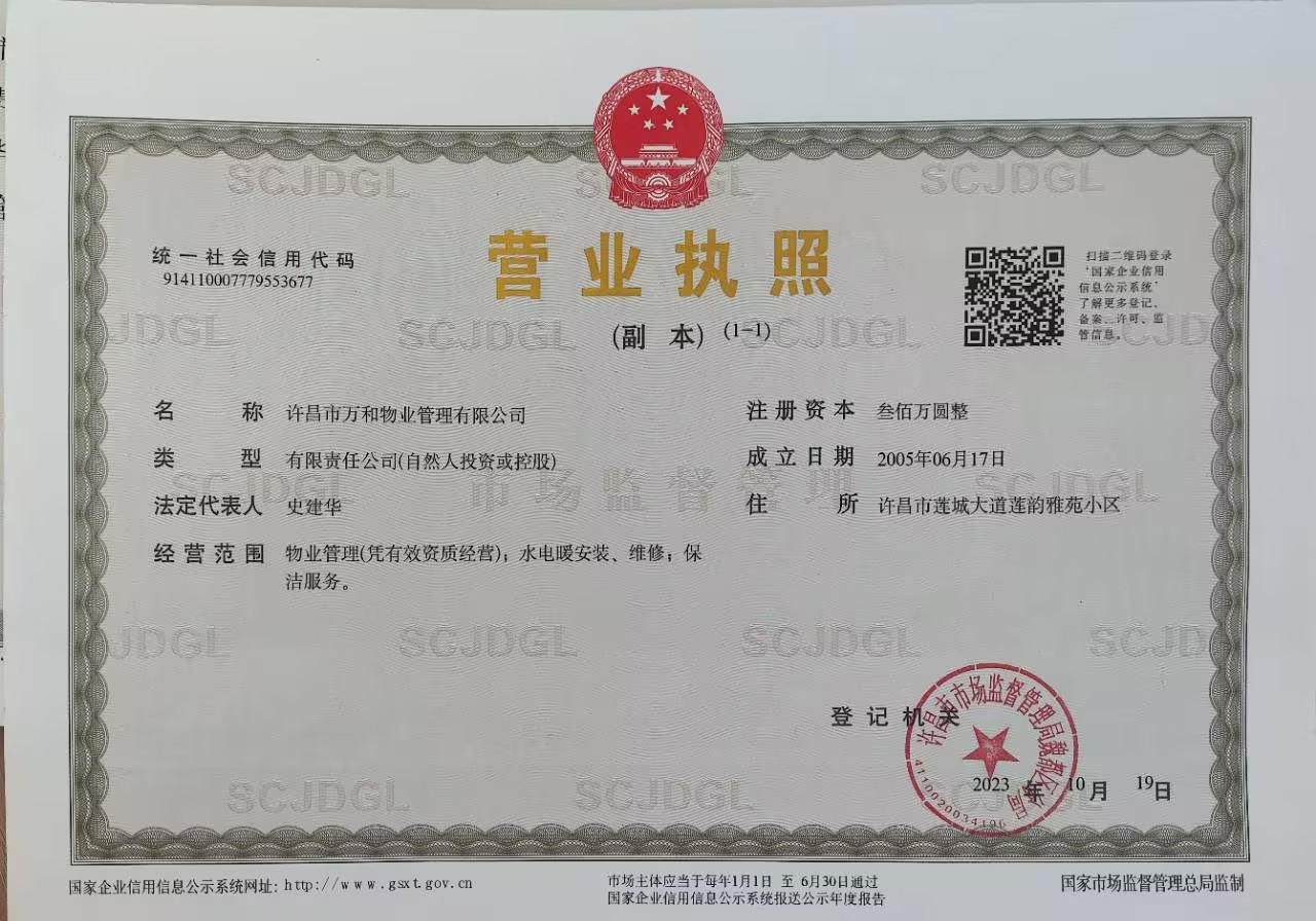许昌市万和物业管理有限公司(原许昌鼎鑫物业管理有限公司)成立于2002年6月,注册资金300万元,具有国家二级物业管理企业资质,是许昌市房地产物业管理协会副会长单位。公司现已发展为许昌市较有规模有盛誉的物业管理企业之一。公司自成立以来,以“忠诚、爱岗、创新、高效”作为企业精神,秉承“竭尽全力为业主服务”之理念,牢固树立“服务第一,业主至上”的思想,端正服务态度,提高服务品质,全心全意地为业主服务,实施品牌战略,坚持服务创新,创立独具特色的万和管理模式,以诚信、守法、优质、高效的服务赢得广大业主对公司的信赖。公司目前主要负责滨河花园、滨河名郡、商务广场、新天地丽景苑、丽都苑、新世纪花园、盛世嘉苑、龙湖湾、鑫悦广场、莲韵雅苑、运河鑫城、东风桥小区等16个经典小区的物业管理工作。万和物业公司组织机构健全,制度完善,提供专业的保安服务、清洁服务、暖气安装维修服务、绿化服务、消防服务等全方位的物业管理服务。